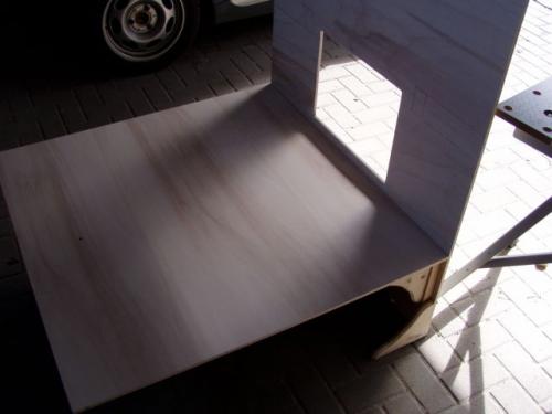 Ja, die Bühne hat auch einen eigenen zerlegbaren Tisch. Ein Bekannter hatte ihn mir gebaut, wie ich die erste Eickemeyer-Bühne plante. Wenn alles fertig ist, gibt es ein Bild mit allen zur Bühne gehörendem Materal. Da ist dann der Tisch mit bei.