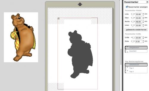 Dan die Einstellungen für die Passermarken. Einfach die normale Einstellungen hantieren, sei es dass wir die Marken sehen wollen.