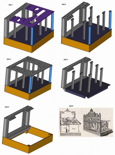 Die Bühne kann zerlegt werden (Abb:2,4 und 5) und ist einfach zusammensteckbar.